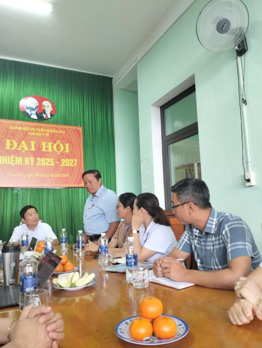 Kết luận buổi làm việc, đồng chí Trần Văn Thịnh ghi nhận và đánh giá cao những kết quả mà Trạm Y tế xã Hoàn Lão đã đạt được trong thời gian qua. Đồng chí nhấn mạnh, Trạm cần tiếp tục phát huy vai trò của tuyến y tế cơ sở; chủ động tham mưu cho cấp ủy, chính quyền địa phương; tăng cường phối hợp với các ban, ngành, đoàn thể để thực hiện tốt công tác khám, chữa bệnh, đồng thời làm tốt nhiệm vụ phòng bệnh, góp phần nâng cao chất lượng chăm sóc sức khỏe nhân dân, đáp ứng yêu cầu trong tình hình mới.