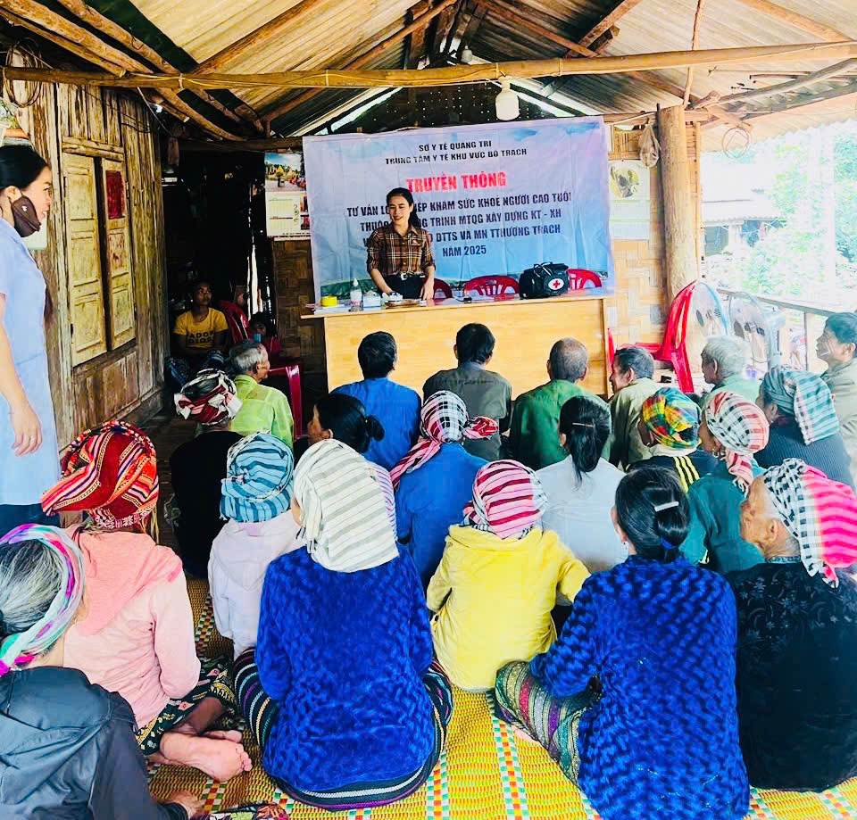 Thực hiện Dự án 7 của Chương trình Mục tiêu Quốc gia phát triển kinh tế - xã hội vùng đồng bào dân tộc thiểu số và miền núi giai đoạn 2021-2030, từ ngày 23 – 26/9, Trung tâm Y tế khu vực Bố Trạch đã phối hợp với UBND xã Thượng Trạch, trạm y tế Tân Trạch và Thượng Trạch tổ chức truyền thông lồng ghép cung cấp dịch vụ khám sức khỏe, sàng lọc một số bệnh thường gặp ở người cao tuổi tại các bản như : Bản 39, bản 61, bản 51, Tuộc, Troi, Cu Tồn, Ban, Khe Rung và bản Aky …của xã Thượng Trạch.
