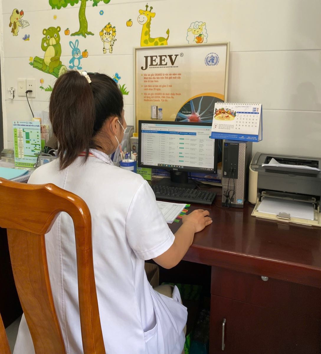 Cán bộ y tế theo dõi lịch sử tiêm của đối tượng trên Hệ thống thông tin tiêm chủng Quốc Gia